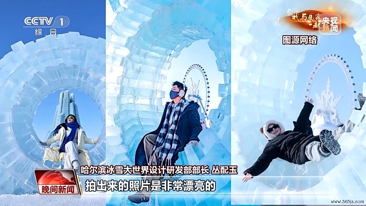 哈尔滨冰雪大世界设计研发部部长 丛配玉:游客排队的这个景观,叫时光之轮。用冰砌成圆圈的形状,雕刻出来时光穿梭的感觉,通过这个孔洞对应的主塔,拍出来的照片非常漂亮。