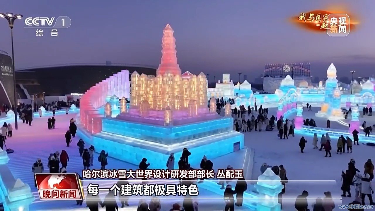 哈尔滨冰雪大世界设计研发部部长 丛配玉:主体景观是由亚奥理事会45个成员的代表性建筑组成的,每一个建筑都极具特色。